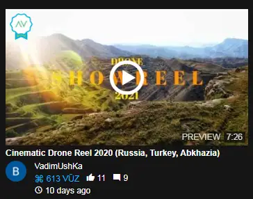 Great news, my video was included in the TOP 5 best works of the week on the AirVuz platform.