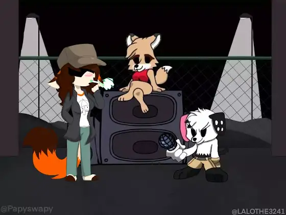 Una pequeña batalla de rap con mi amiga nwn puse mi Skin y la Skin de mi amiga de facebook.Crédito a mi amiga en hacer el fondo y su Oc como Garcelo.@papyswapy8372