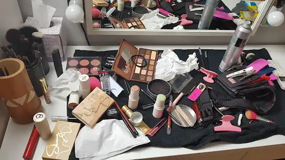 Así es como quedo mi tocador después de realizarle un cambio de look a mi prima. Si quieres ver el maquillaje, no te pierdas el vídeo de mañana como siempre, a las 19:00h. 😘