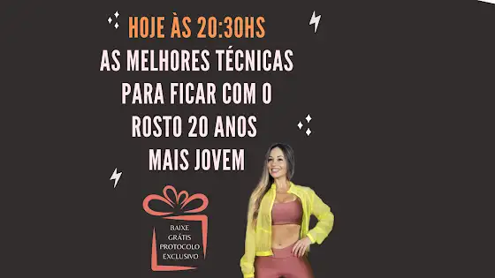 Oi meus amores! Hoje às 20:30hs nós temos um encontro marcado, heim? Eu vou demonstrar as melhores técnicas caseiras (adaptadas e seguras) que vão te ajudar a combater tudo aquilo que está te incomodando no seu rosto, desde manchas, rugas, poros dilatados, até aquela aparência de rosto caído e cansado. Além de apresentar os procedimentos eu também vou disponibilizar gratuitamente uma planilha com o protocolo de tratamento facial completo para ajudar você a se organizar com o passo a passo diário e vou esclarecer muitas dúvidas que vocês sempre perguntam nos comentários. Quem vem comigo? Estarei te esperando! Um grande beijo e até lá!