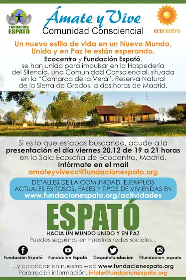¡UNA EXPERIENCIA DE PAZ Y CONEXIÓN ESPERANDO POR TI! Comunidad Consciencial: Ámate y Vive en la Hospedería del Silencio. No te pierdas la presentación el viernes 20.12 de 19 a 21 horas en la Sala Ecosofía de Ecocentro, Madrid.
