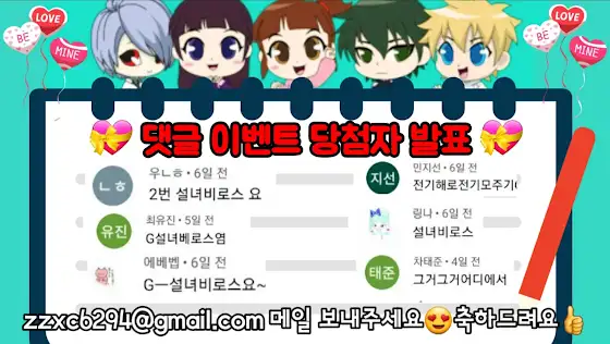신규귀신 그리기 댓글 이벤트 당첨자 발표~!!!당첨되신 분들 너무 너무 축하드려요 >.<당첨자 아이디를 확인하시고zzxc6294@gmail.com로 이름, 주소를 보내주시면택배로 선물을 보내드려요 ^^♥다음 이벤트도 많은 참여 부탁드려요~>.<♥