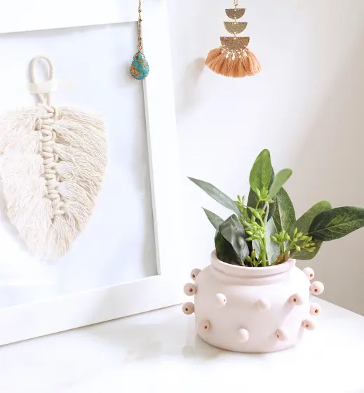 Love my little beaded boho alien-ish planter 🤗😍 I wanted to create something a little unique and fun while still staying true to my decor style. I think it was a success! Love how it brightens up my office space. Head to my new video for more ✨ https://youtu.be/wTs0Ywe9hRE
