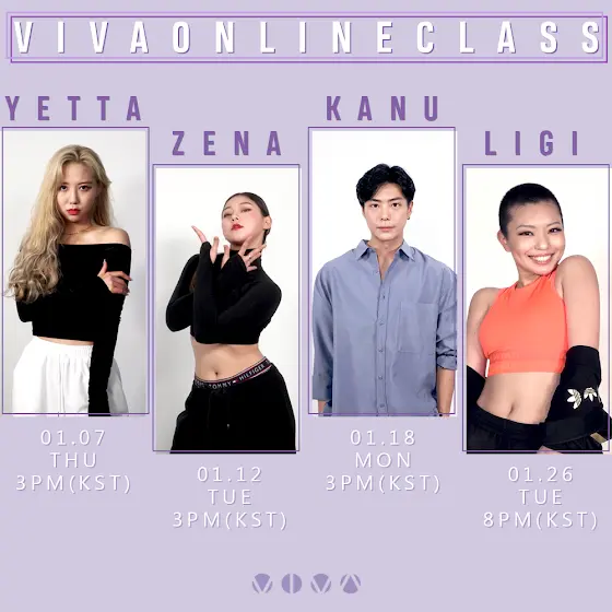 📍2021년 1월 온라인 클래스📍.✨2021년 새해를 맞이해✨비바가 여러분들과의 더욱 많은 소통을 위해 온라인 클래스를 진행합니다-!🎉1월 온라인 클래스 라인업과 일정을 확인하시고 ☑️비바댄스스튜디오 유튜브 채널에서☑️❗️무료로❗️ 온라인 클래스를 확인 할 수 있으니 다들 많은 참여 부탁드립니다!😉..[ 1월 Online Class 라인업‼️ ]✔️ 1/7(thu) 3pm - @_yetta_viva_ ✔️ 1/12(tue) 3pm - @zena__viva ✔️ 1/18(mon) 3pm - @kanu_viva ✔️ 1/26(tue) 3pm - @ligi_viva ..[ 온라인 클래스 Check❗️]1️⃣ 온라인 클래스 라인업 시간을 맞춰 비바댄스스튜디오 유튜브채널 접속! (시간이 널널하시다면 비바영상 정주행 잊지 않기😉)2️⃣ 1시간 동안 댄서의 안무를 열심히 배운다!3️⃣ 댄스를 다 배웠다면?! 10분 ~ 20분 동안의 댄서와 소통시간!!..비바댄서들과 유익한 시간을 보내고 싶다면?다들 비바댄스스튜디오 온라인 클래스를 확인하세요🤗..In the new year of 2021, Viva will hold an online class for more communication with you-! January Check the online class lineup and schedule You can check online classes for free from the Viva Dance Studio YouTube channel, so everyone is invited to join us!