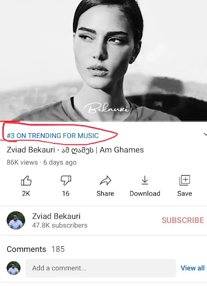 ქართული იუთუბის ტრენდებში მე 3 ადგილს იკავებს ჩემი სიმღერა 😍 მადლობა🙏