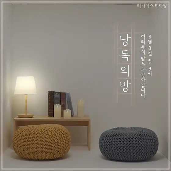 ☕티다방이 선물하는 봄밤🌸<마음을 짓다, 낭독의 방>📖 3월 8일부터 평일 밤 9시 TBS 아나운서들이 문학작품을 들고 여러분 곁으로 찾아갑니다~😊 ------------------📙여러분에게 들려드릴 문학작품들📙------------------ 김혜지 아나운서_ 마종기의 '책장' 이민준 아나운서_ 안도현의 '스며드는 것' 조현아 아나운서_ 황규관의 '마침표 하나' 김진현 아나운서_ 김상욱의 '떨림과 울림' 강지연 아나운서_ 양정훈의 '가끔은 세상에서 사라지고 싶어서' 황원찬 아나운서_ 박준의 '좋은 세상' 이가희 아나운서_ 황동규의 '겨울밤 0시 5분' 정연주 아나운서_ 백무산의 '장작불' 김상아 아나운서_ 도종환의 '사랑을 잃은 그대에게' 송정애 아나운서_ 장영희의 '살아온 기적, 살아갈 기적' 나선홍 아나운서_ 이병률의 '외면' 황진하 아나운서_ 노희경의 '설렘과 권력의 상관관계' 최지은 아나운서_ 소노아야코의 '타인은 나를 모른다'