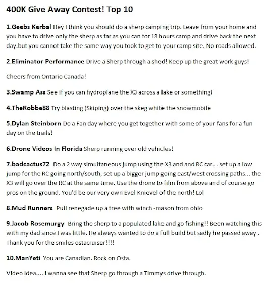 Here are the finalists for the 400K Subscriber Give away!