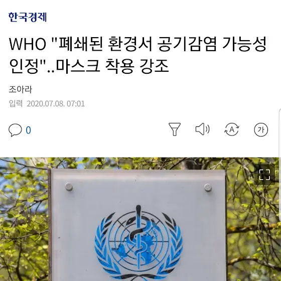 결국 공기감염(에어로졸감염)을 WHO도 인정했네요.