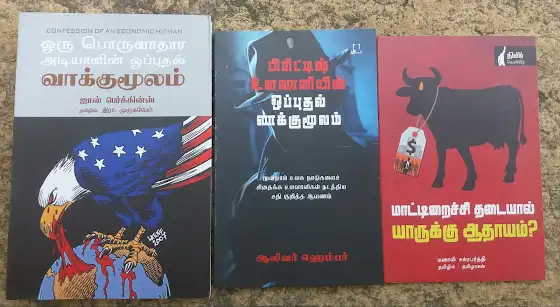 முதலில் உள்ள இரண்டு புத்தகங்களை அனைவரும் வாங்கி படியுங்கள்,இன்று நம்மை சுற்றி நடக்கும் பொருளாதார,வர்த்தக அரசியலை தெளிவாக புரிந்துகொள்ள முடியும்.நேரமிருந்தால் வாங்கி படியுங்கள் -நன்றி